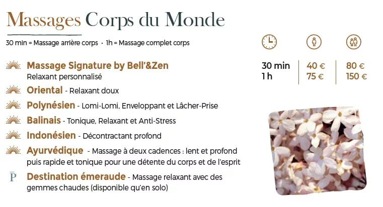 Massages Corps du MondeBelletzen2025-09-02T16:13:55+02:00 Massages Corps du Monde COMMANDER VOTRE SOIN – 0%ZENPrenez du temps pour vous, vous le méritez. Découvrez dès à présent nos cartes cadeau soins beauté et bien-être. COMMANDER VOTRE SOIN
